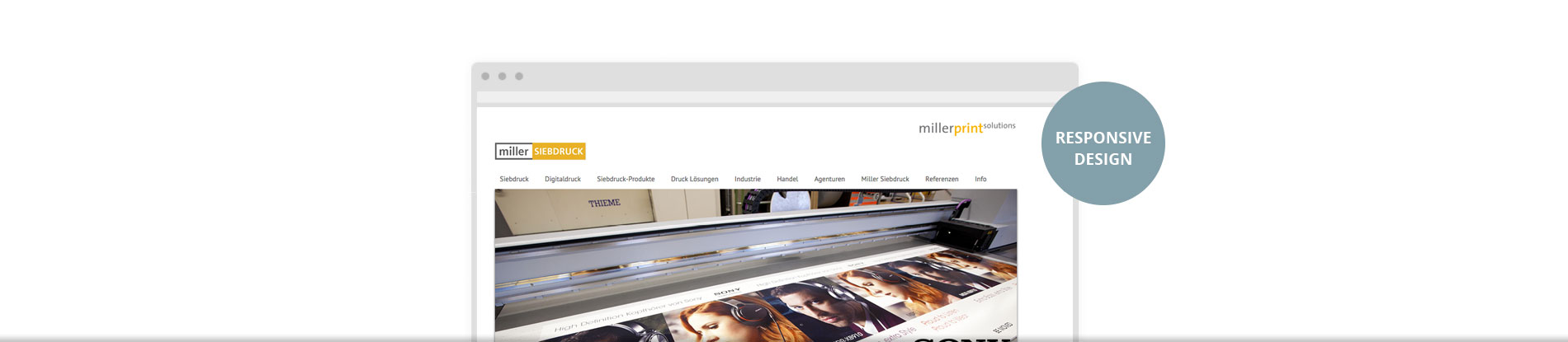 Klare Struktur und klare Linien für die Unternehmenswebseite einer Druckerei spezialisiert auf Siebdruck und Digitaldruck. Ansprache an unterschiedliche Branchen und Zielkunden. Modernes Design und überzeugende Umsetzung der Seite