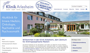 Webseiten-Gestaltung für die Klinik in Arlesheim mit Darstellung der klinischen Leistungen, Patientenbereich, Vorstellung der Ärzte, Informationen über Behandlungsmöglichkeiten.