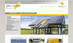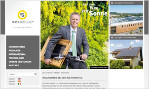 Webseite für Unternehmen im Berich Solarenergie und alternative Energien. Ansprache von Endkunden und Investoren sowie Zielgruppen aus der Bautechnik. Hintergrundinformationen, Fotoproduktionen, Texterstellung und Web-Programmierung auf WordPress, Typo3, Drupal und im HTML3 Standard.
